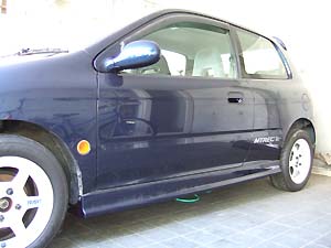 ■3号車■某ークションで入手して塗装に出してあったJA4ライフ純正オプションのサイドステップが上がってきたので、さかもと氏に取り付けてもらいました。 トゥデイにはオプション設定がなかったようですが、フロアが共通なだけあって、ピッタリ合います。(ボディ側には穴あけが必要でした)