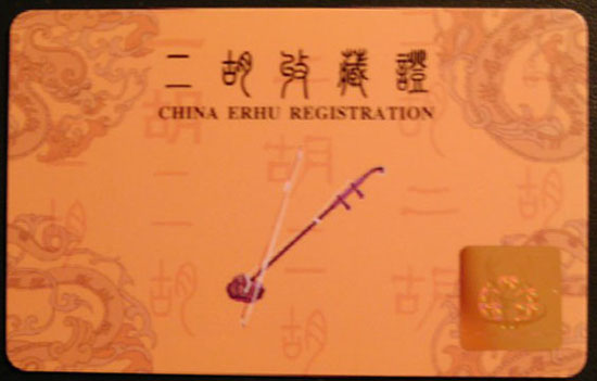 ・二胡収蔵証