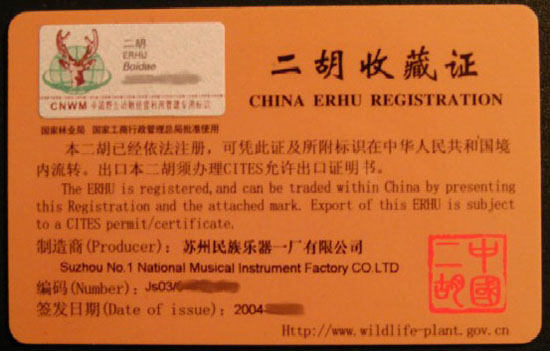 私は二胡がワシントン条約なるものに引っかかるとは全然知らず、空港の税関で「ケースを開けてください」と言われて「ハイ 。♪どうぞーー」みたいな雰囲気でした。