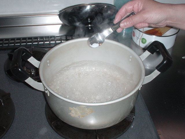 そのとき重曹を少々入れます。