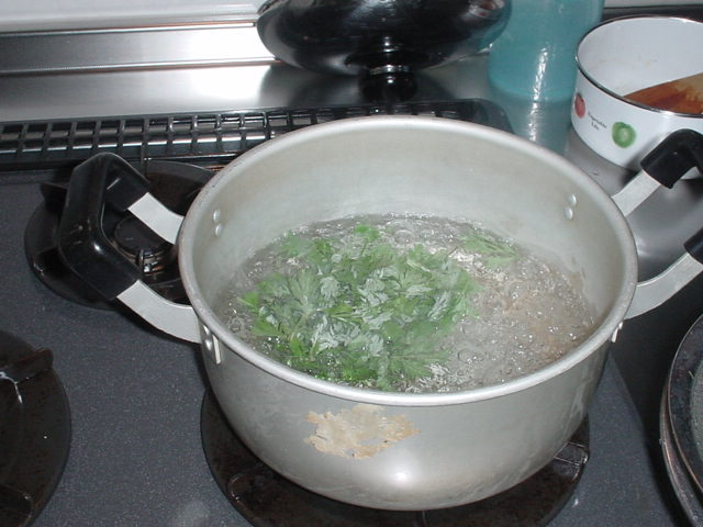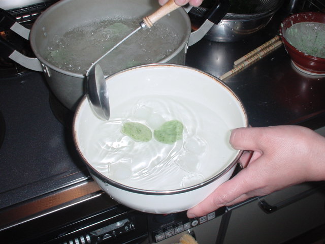 沸騰した湯の中でさっと煮ます。