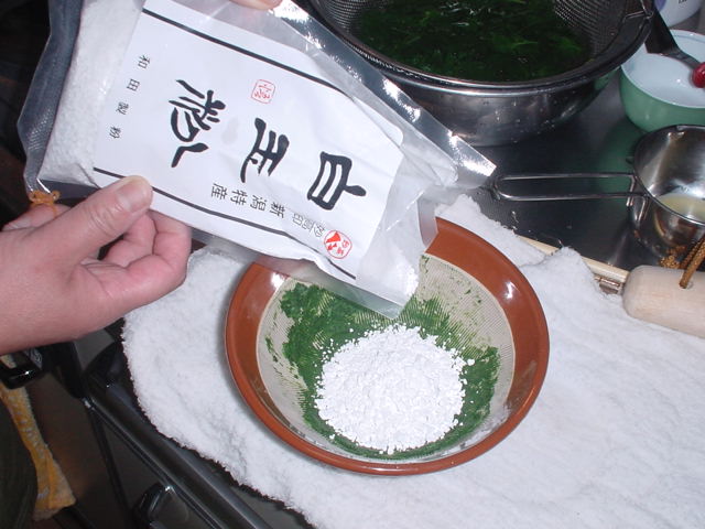 ここから白玉粉を使って草餅を作ります。