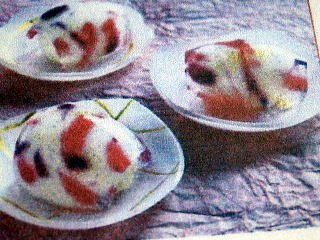 ★錦 お正月らしいカラフルな和菓子です。 大福の上に透明なゼリーがトッピング。 |