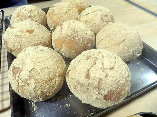 ★きなこドーナツ こんにゃく粉を加えてもっちりとした生地に 香ばしいきなこをまぶしました。 揚げていないのでさっぱりとした味わいです。 |
