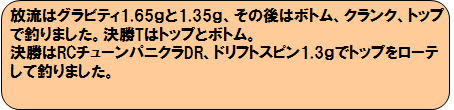 | 決勝 30分(15分×2) 総釣果 |