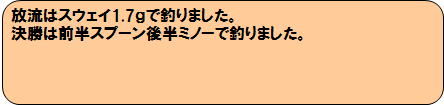 | ライン:RCエステル 0.35号、Xブレイド S-PET 0.35号、D-PET 0.3号 | |||||||
