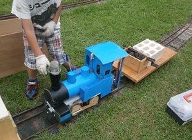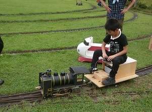 お子さまが、大好きな蒸気機関車の走行準備をしています。