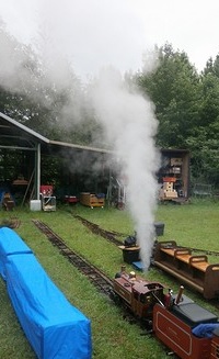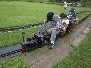 「楽しんでいってくださ〜〜〜い。」 ![]() 自作(衣浦車輌)のディーゼル機関車です。 ![]() こちらは、新幹線300系でしょうか。 ![]() ![]() 機関区では、OS製 コッペルのスチームアップが行われています。
