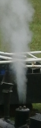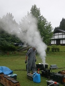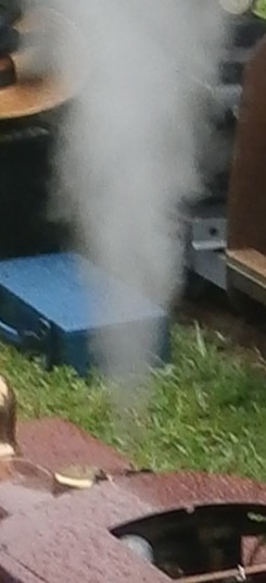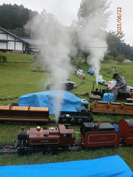 こちらもスチームアップ中で、安全弁が吹きました。 ![]() OS 製コッペルとOS製 T5ーSUPERの安全弁から吹き出た蒸気が、