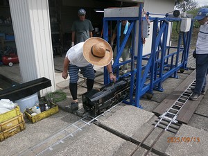 テンダー部(42kg)も、車からリフト付きのトラバーサーに乗せた後、平行移動しています。