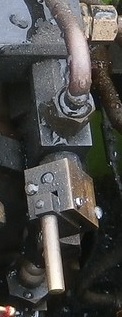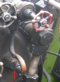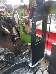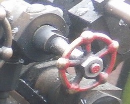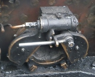 ![]() ![]() 引き続き、D51199の運転室の各機器を見ていきます。 J : 焚口戸 ![]() 焚口戸です。 動力式のように見えますが・・・。動力式でしょうか?。 K : 通風弁(ブロアーバルブ) ![]() 通風弁(ブロアーバルブ)です。 石炭などの燃料の燃焼に密接に関わる機器です。 バルブを開けて通風を効かせますが、強すぎても弱すぎても芳しくありません。 また、ボイラー蒸気圧の高低によって、通風の強さが変わります。適宜開閉調整します。 ![]() バルブを出た後の配管を見ると、ボイラーの中を通って(↑)、 煙室に向かっているようです。 L : 汽笛弁(ホイッスルバルブ ![]() 汽笛弁(ホイッスルバルブ)です。 汽笛は、周りの方に列車が近づいていることなどを知らせる安全に関わる機器で、是非、装備したい機器です。 また、発車時に汽笛を鳴らすと、いかにも蒸気機関車らしくカッコイイです。 ![]() ![]() さて、D51199のお隣では、