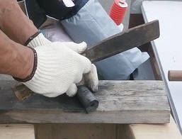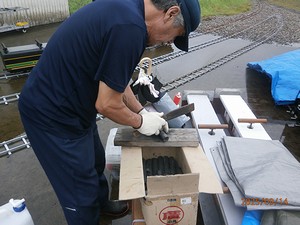 WADA WORKS製コッペルの走行準備が進められています。 ![]() WADA WORKS製コッペルの燃料のオガ炭を鉈(なた)で割っています。 ![]() ![]() 小丸の直径は、500円玉より少し大きい程度ですので、