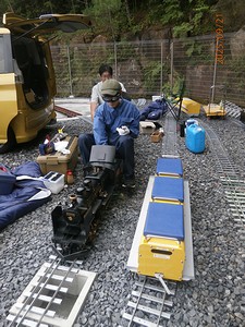 走行に向けて準備をしています。足回りにオイルを注しています。
