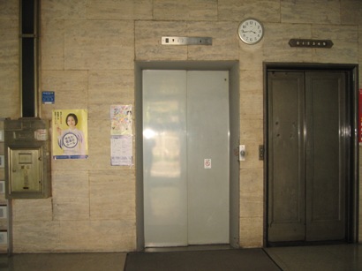 右の手動エレベーターは、管理のおじさんにより作動することもあります。