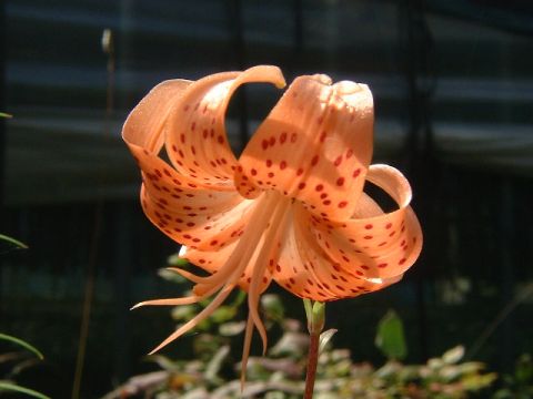 | 盆栽仕立てのユリ。20cm程度の背丈しかない。 |
