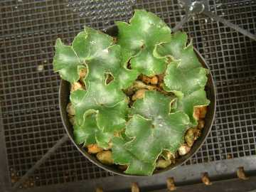 | 最初、金魚葉かと思ったが、大文字葉のうねりが大きな個体。このタイプは持ち合わせが無いので、譲っていただくこととなった。 |
