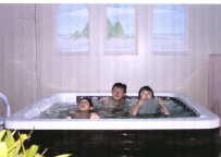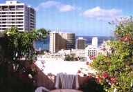 | <テラス部分からワイキキ望む> | <気持ちいい〜ジャグジー> 子供たちはまるで露天風呂気分(^o^) |