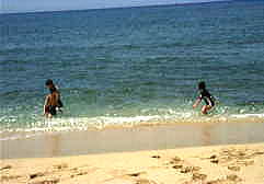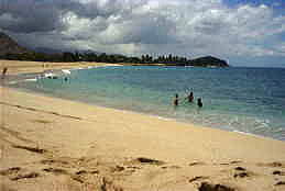 程なく、H1も終わりFARRINGTON Hwyに入る。左手にビーチが見え隠れして、右手は険しい山々が見えなんだか又違ったオアフを発見。とりあえずは行き止まりまで行きたくて(^_^;)ヨコハマベイまで行き、折り返してライフガードもいて安心そうな「マカハビーチパーク」で待望の海水浴です。