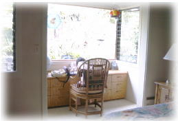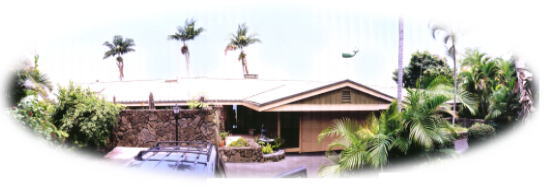 メインハウスの大きなドアを開けると、そこは素晴らしく広いリビング!エドワードさんが「どお?」という笑顔で私たち家族の反応を伺っている・・本当に素敵なリビング。天井が高いので開放感一杯で、リビング窓からは遠くKealakekua Bayが見渡せる。お部屋内を案内してくれてキッチンの冷蔵庫を開け「チョコレートとコナコーヒーはあなたたちへのプレゼント・・・そして・・」と言いつつ冷蔵庫下段からレイを4つ出し家族それぞれの首に「アロハ!」とかけて頂いた。本当に感動(T_T)。ファーム内の木から朝取ったマンゴーやライムがキッチンの皿に載せてあり「僕が朝あの木から取ったんだ!新鮮で美味しいよ!」とそれらも頂いた。宿泊料の支払はその場でカードをきる仕組み。明細と領収証も頂いて「ゆっくりしてね」の言葉と共にエドワードさんは笑顔を残してオフィスに戻って行った。