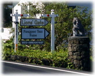 うわさには聞いていたけれど本当に溶岩台地(@_@)!到着後はハーツのレンタを借りて(4WD)空港からカイルアコナのスターマーケットで買出しをし、フレグラントツリーを目指す。思いのほか相当走る(1時間はゆうにかかる)ハイウェイ11を走りマイルマーカーが105と書いた標識が見えたらすぐ右側にライオンズゲートと「Fragrant