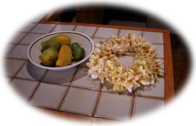 | <玄関フロア>とても広い(@_@) | <Welcome レイと果物> |