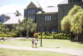 ビショップ博物館は実は初めて!行こう行こうと思いつつなかなか行けなかった所の1つ。偶然見付けて「見てみる?」てな具合で入ったけれど、結構見ごたえがあって展示物も興味のある物が多く、私はお気に入り(^_-)。歴史的は博物館とか展示物は好きなので、以前読んだハワイの歴史本の中に出てきた王様や建物様式など、数々の展示物を見て「ふーんなるほど」と納得。ハワイにわたって来た各国の人々の衣装や当時の物がとても興味深かった。これを使っていた人はハワイに来た時、どんな気持ちだったんだろう?遠い祖国を思いどのように毎日このハワイでがんばっていたのだろう?そんな思いを想像しつつ、ビショップを後にしたのでした。 |