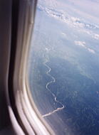 乗っている間、パンフでCRJをお勉強。パンフの通り音が静かだし、揺れも少ない。天気が良かったので海岸線がとても綺麗に見える、地図を見ながら「今ここあたりかな?」と娘と話する。東北地方を抜けようとした時、福島空港の滑走路横に描かれている「うつくしまふくしま」(多分・・)の文字を見つける。こうして日本を見ると、やっぱり緑が多く綺麗な大地だ。川の線、山々、海岸線など見所が一杯!