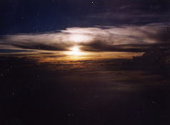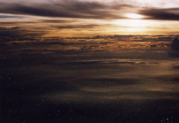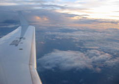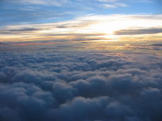 夕方からの便だから海岸線や綺麗な大地は見えないだろうと思っていたけど、日没まじかの雲の上は言い表しようの無い美しさだった。。