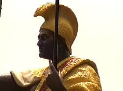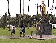 | 緑豊かな大地にカメハメハ大王像様が・・ | アップにするとこんなお顔 |