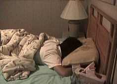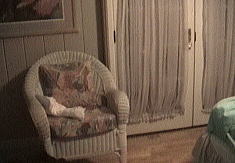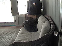 主寝室のソファ、テレビ(ビデオデッキあり) フロアにはラグマットが敷いてありました |