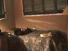 ほんとにシングルなベッドが2台。 奥の部屋なので暗め。 |