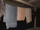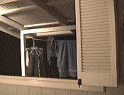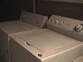 | <ランドリー> ランドリーも外!!(^_^;)。 乾燥機と洗濯機が並んでいて、横にシンクあります。 右の画像のように、屋根付きで物干しも付いて いました。 でも干しても日陰のせいか・・あまり乾燥せず! 夜は裏庭(一応あります)が真っ暗なので、 ちょっとコワイ・・。 |
