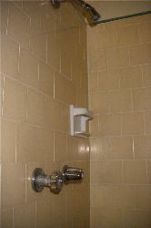| 広いのにダブルボールじゃない洗面台・・もうちょっと大きめが嬉しいんですけど。。 | タブ無しのシャワーブース。カーテンが付いているだけ。 | |